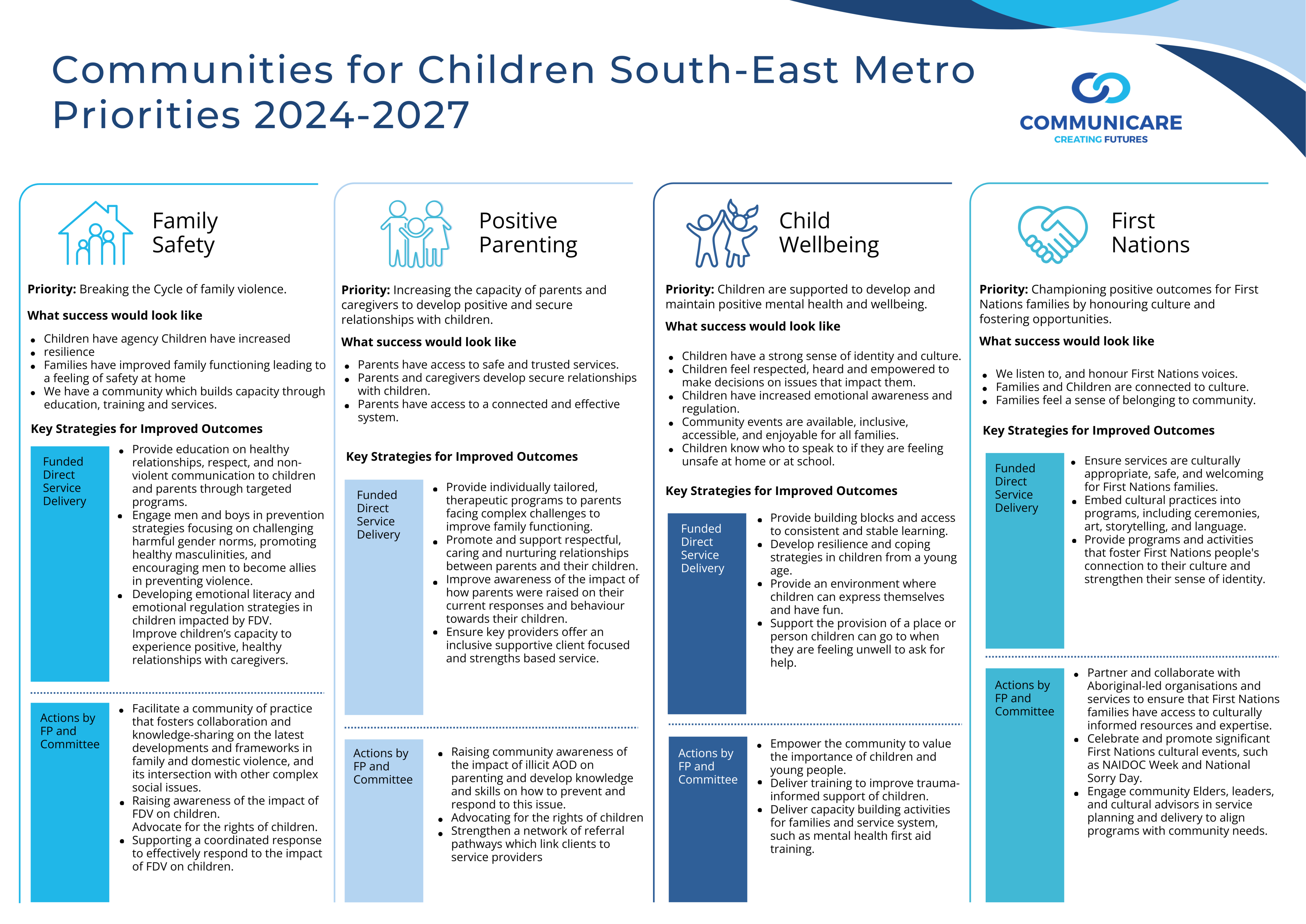 Click below to view our 2024-2027 Priorities. This is a visual version of our Community Strategic Plan, developed in consultation with community. Our Community Strategic Plan underpins all the work we support in our community.